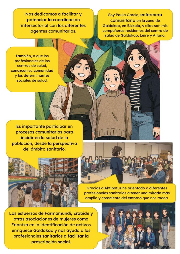 El pasado 4 de noviembre, la enfermera comunitaria del Centro de Salud de Galdakao y sus compañeras residentes salieron a recorrer el municipio para descubrir sus riquezas comunitarias y escuchar la voz de sus vecinas. Porque la salud va más allá del centro de salud: también se construye en las calles, las plazas y los parques.