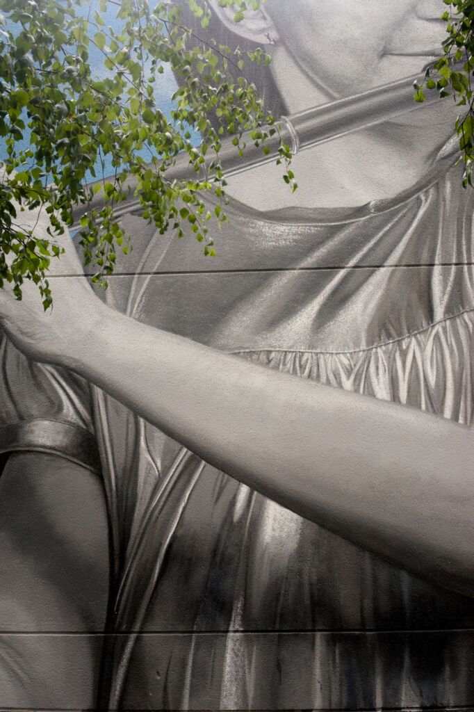 Conseguir una pared para la realización del mural fue una tarea muy complicada. Quisimos hacerlo cerca de la plaza que lleva tu nombre y donde está proyectada la construcción de casa de las mujeres, pero no conseguimos todos los votos de la comunidad de propietarios. Sin embargo, logramos la autorización en el barrio de Tximelarre, donde tú viviste y donde muchas vecinas y vecinos te conocieron, y se alegran de que tu mural les reciba al entrar en el barrio.