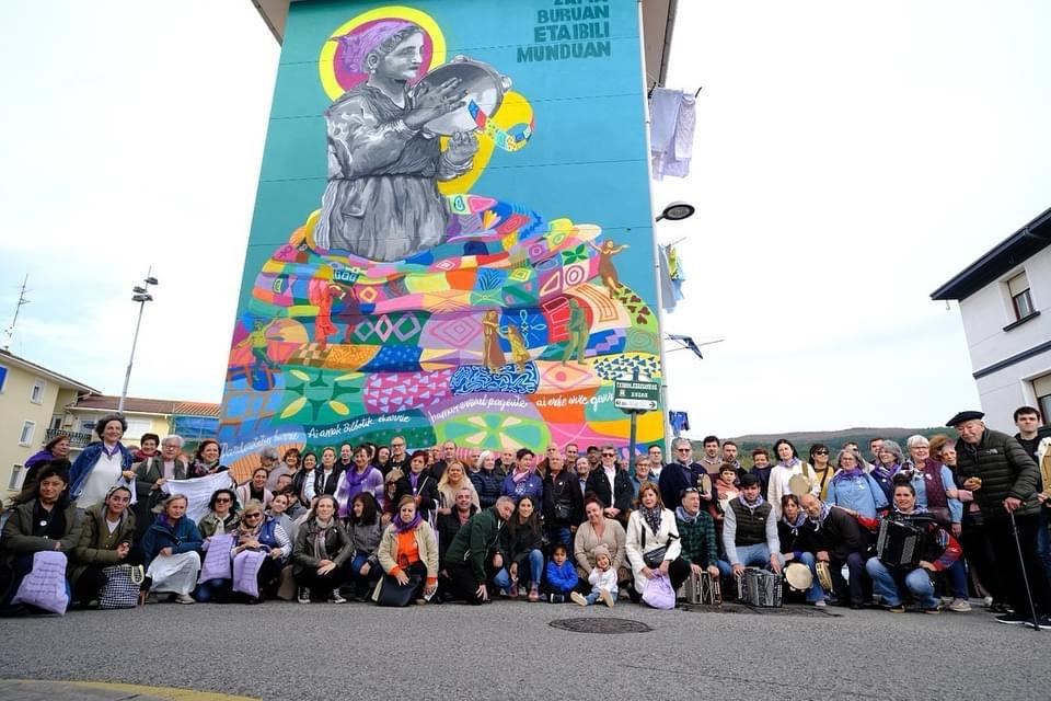 Belisario Gago, de 91 años, uno de los primeros vecinos en votar a favor, nos contó que duerme en la habitación contigua a la pared del mural y que siente tu protección. El día de la inauguración se hizo un pasacalle con hombres y mujeres tocando acordeones, trikitixas, albokas y panderos, entre las que se encontraba una de tus nietas. Fue un día muy especial, y tu hija Belén nos comentó que tú te lo habrías pasado genial en aquella fiesta.